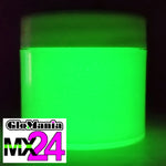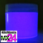 Invisible Neutral is a term given to White Glow in the dark pigment powders that glow a color in the Dark. These are solid crystals that in an inert state are WHITE or an OFF White color. MX24 has the highest concentration of pigment to medium that we can produce without caking issues.